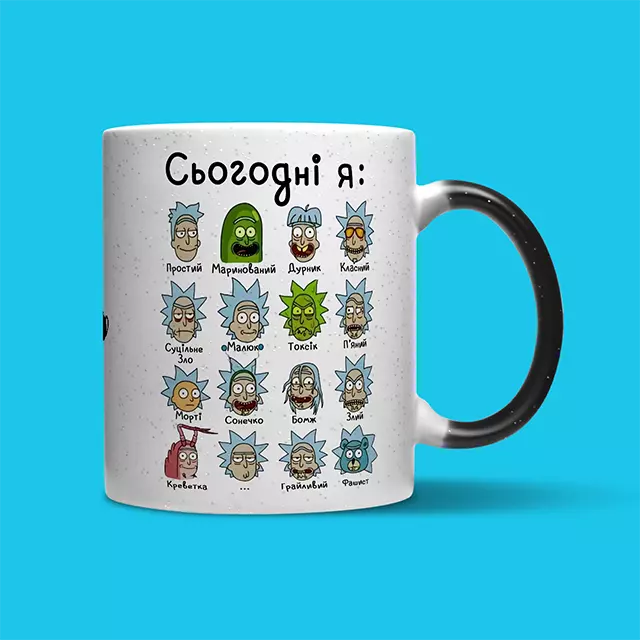 Керамічна кружка хамелеон – це те що змусить вас посміхатися вашій каві кожного ранку! Для виготовлення своїх кружок ми використовуємо справді товсту кераміку, що запобігає опікам на ваших руцях поки ви насолоджуєтеся улюбленим напоєм. Окремої уваги варті блискітки, які немов зорі на небі будуть відігравати разом з малюнком на чашці, який з’являється при нагріванні. Якщо ви шукаєте подарунок для своєї другої половинки або вам просто потрібно щось, що підніме вам настрій о п’ятій ранку під час зборів на роботу – Чайнику Рассела є що вам запропонувати! Головне про кружку: • Матеріал - кераміка; • Спосіб нанесення напису - сублімація; • Об'єм - 320 мл; • Призначення - для чаю, кави, води або інших напоїв; УВАГА! Ми не рекомендуємо мити кружку в посудомийній машині та нагрівати у мікрохвильовці, щоб не пошкодити принт.