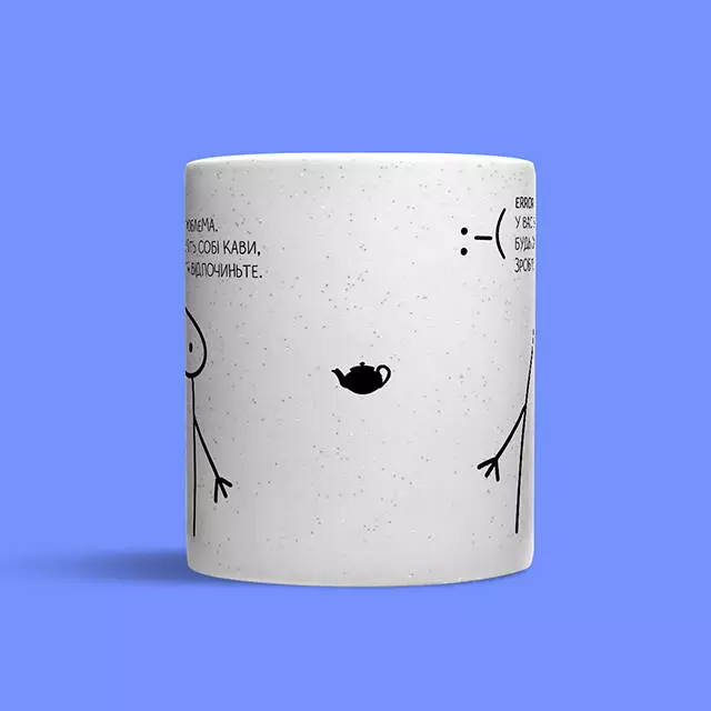 ???? Кружка "ERROR" - подарунок, що розкриває ваше почуття гумору! ???? "Кружка "ERROR" - ідеальний подарунок для ваших друзів, колег та рідних. Ця чудова кружка призначена для тих, хто цінує почуття гумору та важливість позитивної атмосфери. Вона стане улюбленою чашкою під час вечірнього чаювання або додасть бадьорості під час перерви на каву. Незалежно від того, чи хочете ви порадувати себе чи когось особливого, кружка "ERROR" буде нагадувати про важливість збереження нервів та відпочинку від роботи. Вона чудово підійде для будь-якої важливої події чи свята. Основні характеристики кружки: ???? Матеріал: високоякісна кераміка. ???? Спосіб нанесення напису: сублімаційний друк, що гарантує стійкість зображення. ???? Об'єм: 320 мл - ідеальний розмір для твоєї улюбленої кави, чаю або будь-якого іншого напою. ???? Використання: кружка призначена для повсякденного використання з будь-якими напоями - вода, сік, гарячі та холодні напої. ❗️ Зверни увагу! Намагайся уникати миття кружки в посудомийній машині та нагрівання її у мікрохвильовці. Це допоможе зберегти яскравість та довговічність принта. ???????? Обери кружку "ERROR" і порадуй своїх близьких або колег чудовим подарунком на день народження, 8 березня, день захисника та інші свята. Замовляй зараз та насолоджуйся моментами з важливим позитивним підтекстом в кожному ковтку! ????????✨