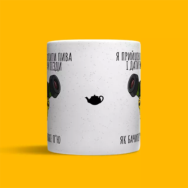 Керамічна кружка хамелеон – це те що змусить вас посміхатися вашій каві кожного ранку! Для виготовлення своїх кружок ми використовуємо справді товсту кераміку, що запобігає опікам на ваших руцях поки ви насолоджуєтеся улюбленим напоєм. Окремої уваги варті блискітки, які немов зорі на небі будуть відігравати разом з малюнком на чашці, який з’являється при нагріванні. Якщо ви шукаєте подарунок для своєї другої половинки або вам просто потрібно щось, що підніме вам настрій о п’ятій ранку під час зборів на роботу – Чайнику Рассела є що вам запропонувати! Головне про кружку: • Матеріал - кераміка; • Спосіб нанесення напису - сублімація; • Об'єм - 320 мл; • Призначення - для чаю, кави, води або інших напоїв; УВАГА! Ми не рекомендуємо мити кружку в посудомийній машині та нагрівати у мікрохвильовці, щоб не пошкодити принт.