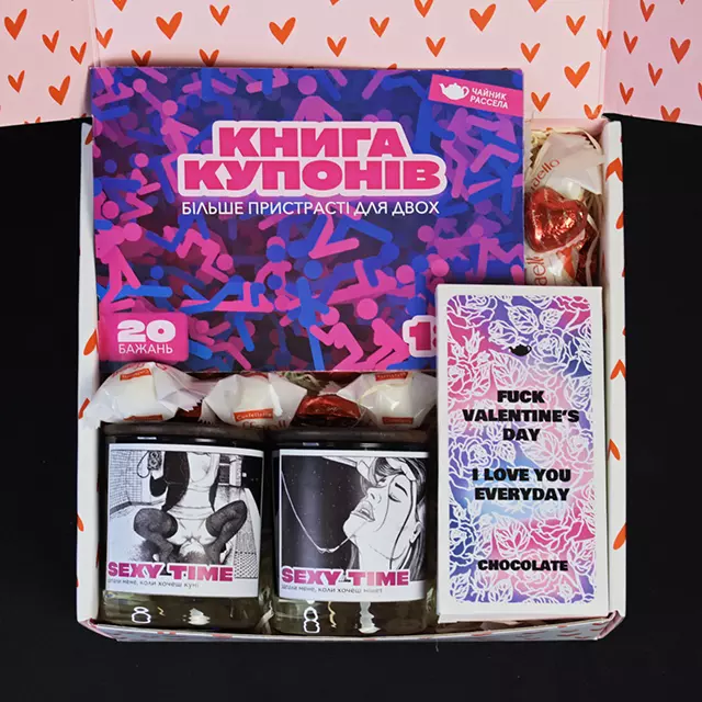 Скільки часу займе пошук тисяча і одного подарунку, якщо всі банальні варіанти на своїй другій половинці вже випробувано? Можете навіть не казати. Ми зробили так, що цей час можна заощадити і приділити увагу один одному! Досить робити адвент-календарі своїми руками. Готове оригінальне пакування, романтична листівка, романтичні і солодкі сюрпризи. Розмір: 250*250*100 Наповнення: - Чекова книжка бажань (20 бажань, 3 рівня складності); - 2 тематичні свічки: темне скло+деревяна кришка, аромат Giorgio Armani; - Цукерки "Любімов" 10 шт; - Цукерки "Raffaello" 10 шт; - Шоколадка :"Valentine's Day" молочна, з мигдалем вага 100 грамів; Весь набір запаковано у подарунковий бокс в світло-рожевих тонах з мільйоном маленьких сердець. Бокс наповнений декоративною тирсою, яка збереже подарунки від пошкоджень.