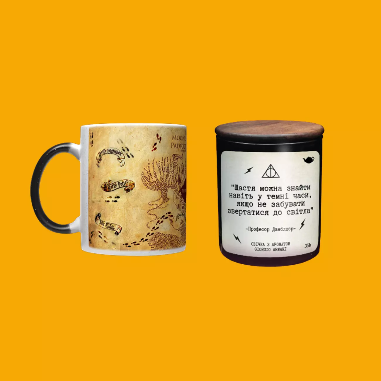 Склад боксу: • Чашка-хамелеон • Ароматична свічка Бонус: Подарункове пакування у подарунок Чашка хамелеон: • Матеріал – кераміка; • Спосіб нанесення напису – сублімація; • Об’єм – 320 мл; • Призначення – для чаю, кави, води або інших напоїв; УВАГА! Ми не рекомендуємо мити кружку в посудомийній машині та нагрівати у мікрохвильовці, щоб не пошкодити принт. Свічка парфумована: Комплектація: Скло+дерев’яна кришка Колір баночки: тоноване чорне скло Колір дерев’яної кришки: темно-коричневий Склад свічки: 185 грамів воску, ароматизатор. Аромат: Giorgio Armani Час горіння: 35 годин