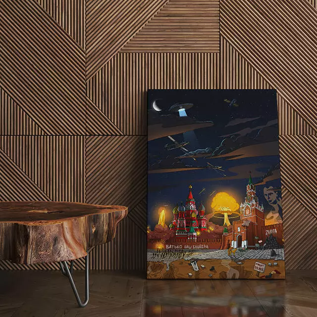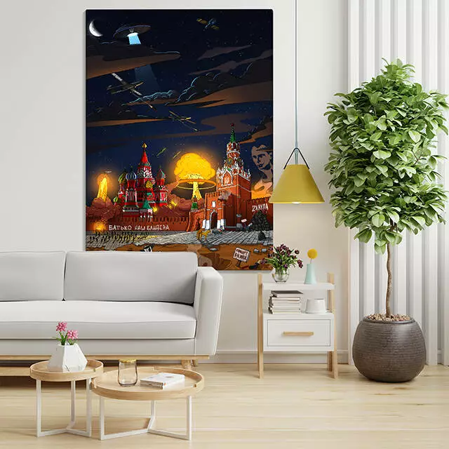 «От мені подобається як воно горить…» - нам теж дуже подобається! Кажуть візуалізація бажань прискорює їх здійснення. розмір: 110х150см *робимо по факту замовлення тому відправка можлива тільки по передоплаті Це ідеальний подарунок для своєї другої половинки, найліпшого друга, або для улюбленого колеги на роботі, чи для себе коханого! Картина стане чудовою прикрасою для офісу, ви завжди розумітимете для чого працюєте - для того щоб цей день нарешті настав. Чудово виглядатиме і в оселі, бо роблячи гарячу каву та попиваючи її з чашки набагато приємніше дивитися на те, як палає кремль. Чудово виглядатиме вона і в магазині, і в салоні, прикладів можна привести безліч! Але головне те, що кожен раз ваша лють ставатиме все сильнішою, ви будете жити з цією мрією та віддавати їй всю свою енергію та мотивацію. І най та моцква палає, ми обов’язково дочекаємося цього афігенного дня!