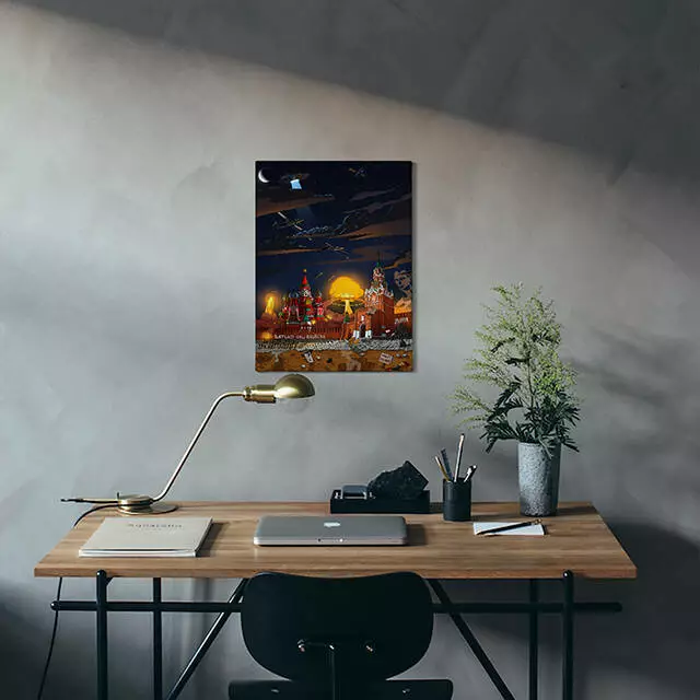 «От мені подобається як воно горить…» - нам теж дуже подобається! Кажуть візуалізація бажань прискорює їх здійснення. розмір: 30х40см *робимо по факту замовлення тому відправка можлива тільки по передоплаті Це ідеальний подарунок для своєї другої половинки, найліпшого друга, або для улюбленого колеги на роботі, чи для себе коханого! Картина стане чудовою прикрасою для офісу, ви завжди розумітимете для чого працюєте - для того щоб цей день нарешті настав. Чудово виглядатиме і в оселі, бо роблячи гарячу каву та попиваючи її з чашки набагато приємніше дивитися на те, як палає кремль. Чудово виглядатиме вона і в магазині, і в салоні, прикладів можна привести безліч! Але головне те, що кожен раз ваша лють ставатиме все сильнішою, ви будете жити з цією мрією та віддавати їй всю свою енергію та мотивацію. І най та моцква палає, ми обов’язково дочекаємося цього афігенного дня!