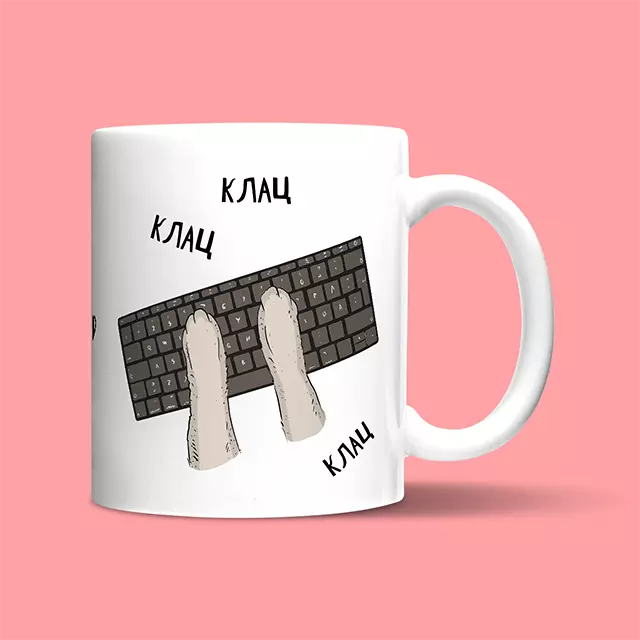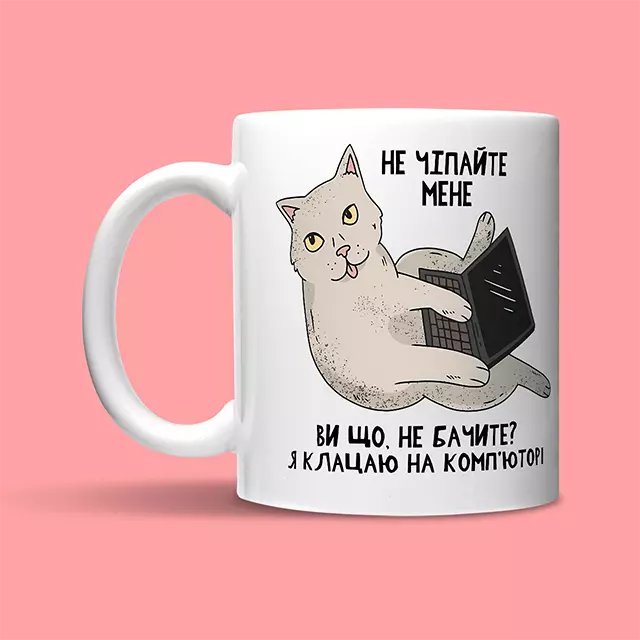 Клацаю на комп'ютері | Кружка - біла