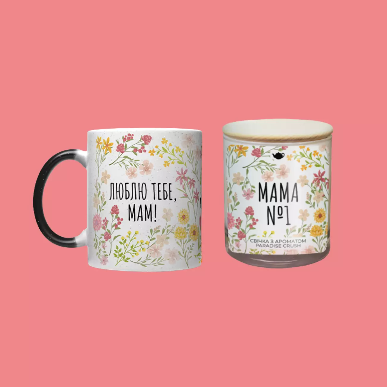 Подарунковий бокс "Люблю тебе мам" від Чайника Рассела до Дня матері – це чудовий спосіб віддячити вашій мамі за все, що вона робить для вас кожен день. Склад боксу: • Чашка-хамелеон • Ароматична свічка Бонус: Подарункове пакування у подарунок Чашка хамелеон: • Матеріал – кераміка; • Спосіб нанесення напису – сублімація; • Об’єм – 320 мл; • Призначення – для чаю, кави, води або інших напоїв; УВАГА! Ми не рекомендуємо мити кружку в посудомийній машині та нагрівати у мікрохвильовці, щоб не пошкодити принт. Свічка парфумована: Комплектація: Скло+дерев’яна кришка Колір баночки: тоноване чорне скло Колір дерев’яної кришки: темно-коричневий Склад свічки: 185 грамів воску, ароматизатор. Аромат: Paradise Crush Час горіння: 35 годин