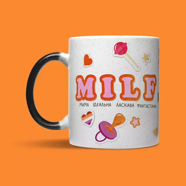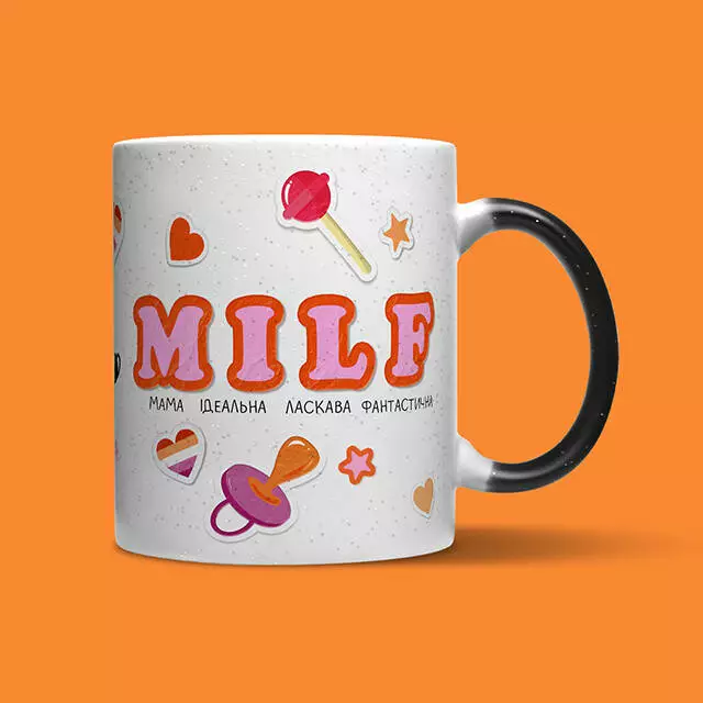 Ваше життя 100% зміниться, якщо ви заволодієте чашкою "Мілфа" від Чайника Рассела! Головне про кружку: • Матеріал – кераміка; • Спосіб нанесення напису – сублімація; • Об’єм – 320 мл; • Призначення – для чаю, кави, води або інших напоїв; УВАГА! Ми не рекомендуємо мити кружку в посудомийній машині та нагрівати у мікрохвильовці, щоб не пошкодити принт.