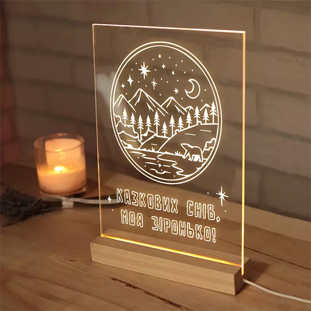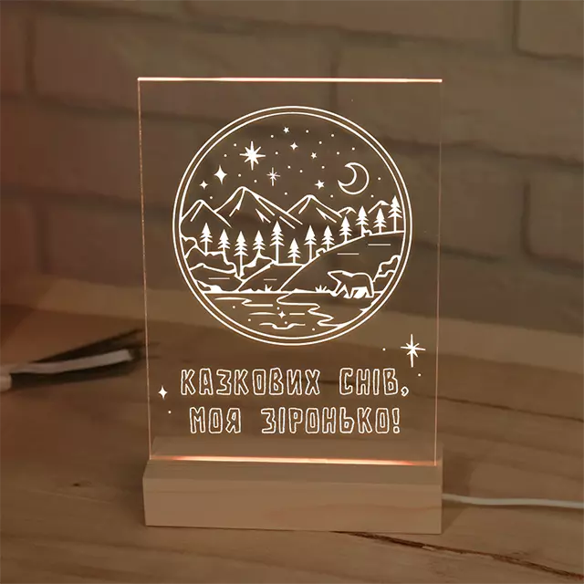 Чайник Рассела продовжує створювати неймовірні подарунки для вас! Це просто маленьке диво. Нічник, який ти не захочеш вимикати! Сучасна та об'ємна 3D-лампа стане незамінним помічником для тих, хто обожнює насолоджуватися довгими ночами та приємними вечорами. Такий подарунок принесе максимум користі та приємних вражень, а оригінальні чуттєві та затишні дизайни багато розкажуть про ваші почуття. Інформація про нічник: Матеріал: акрил (товщина - 3 мм); Тип підключення USB; Колір підсвітки - теплий білий; Тип підсвітки - Led; Матеріал корпусу - соснова деревина; Потужність: 3-3,5W