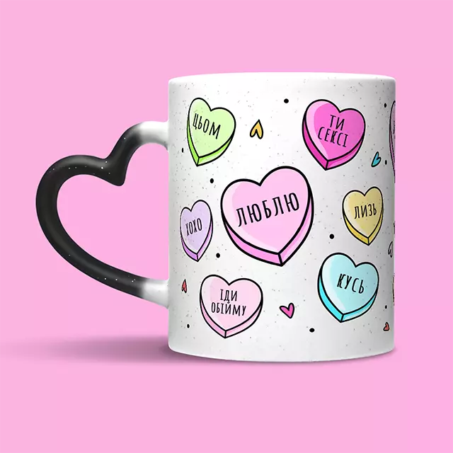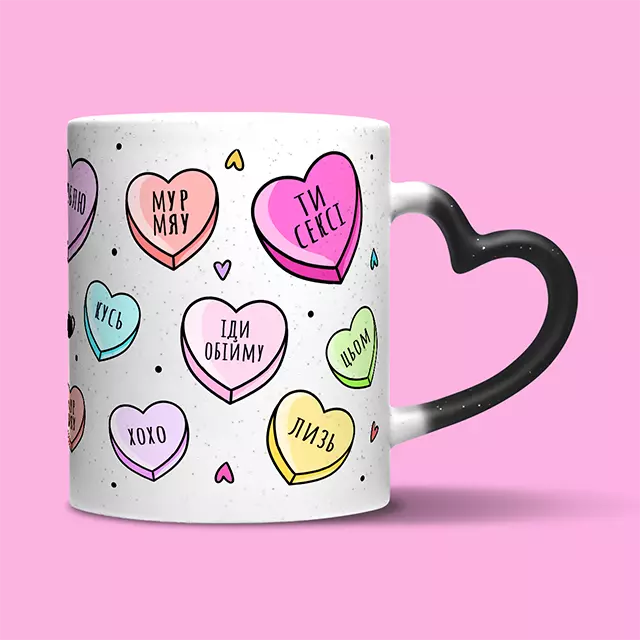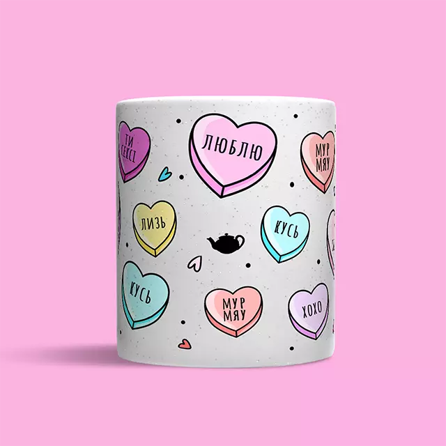 Мур-мяу сердечка | Кружка - сердечко