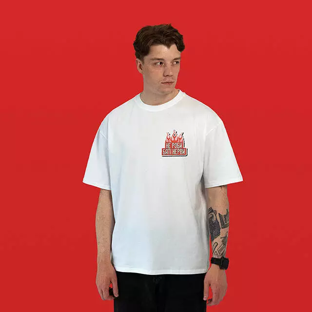 Фасон: оверсайз Тканина: стрейч кулір (Туреччина) Склад тканини: 95% бавовна 5% еластан Щільність 190 г/м2 Власне виробництво.  Вид нанесення : дтф друк Колір: білий, чорний  Виріб преміум якості має прямий крій, спущену лінію плеча та круглу горловину.  Кулір - турецкий бавовняний матеріал ,чудово зберігає форму. Стрейч - кулір має у своєму складі 95% бавовни і 5% лайкри для еластичності. Догляд за товаром: Прання при температурі не більше 40 градусів, можливо в пральній машині при мінімальних оборотах, або делікатне ручне прання. Принт прасувати тільки з вивернутої сторони без пару. Виробництво та Відправка: 1-3 днів В Комплект входить:  • Футболка Oversize  • Фірмове упакування