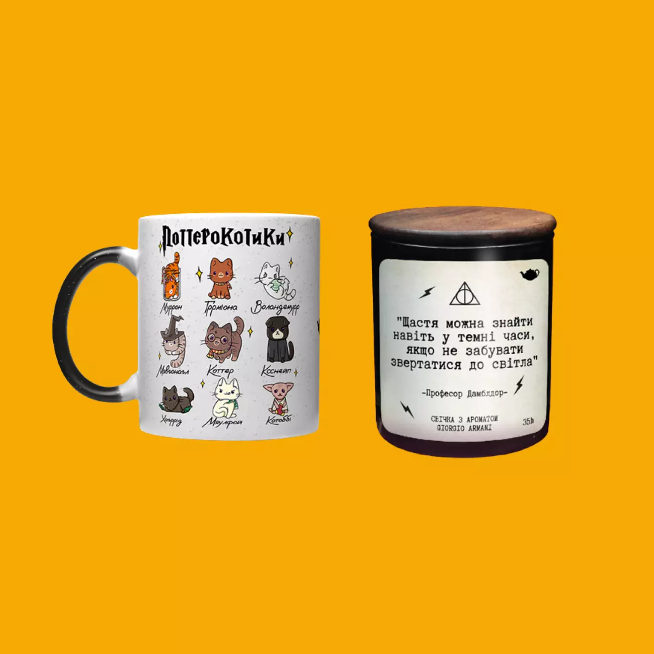 Склад боксу: • Чашка-хамелеон • Ароматична свічка Бонус: Подарункове пакування у подарунок Чашка хамелеон: • Матеріал – кераміка; • Спосіб нанесення напису – сублімація; • Об’єм – 320 мл; • Призначення – для чаю, кави, води або інших напоїв; УВАГА! Ми не рекомендуємо мити кружку в посудомийній машині та нагрівати у мікрохвильовці, щоб не пошкодити принт. Свічка парфумована: Комплектація: Скло+дерев’яна кришка Колір баночки: тоноване чорне скло Колір дерев’яної кришки: темно-коричневий Склад свічки: 185 грамів воску, ароматизатор. Аромат: Giorgio Armani Час горіння: 35 годин