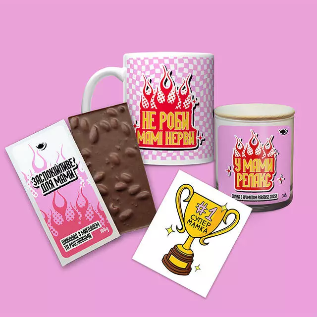 Подарунковий бокс "Прикольна мама" від Чайника Рассела до Дня матері - це чудовий спосіб віддячитися вашій мамі за все, що вона робить для вас кожен день. Склад боксу: • Чашка-хамелеон • Ароматична свічка • Молочна шоколадка з цільним мигдалем та родзинками • Подарункова листівка Бонус: Подарункове пакування у подарунок Чашка хамелеон: • Матеріал – кераміка; • Спосіб нанесення напису – сублімація; • Об’єм – 320 мл; • Призначення – для чаю, кави, води або інших напоїв; УВАГА! Ми не рекомендуємо мити кружку в посудомийній машині та нагрівати у мікрохвильовці, щоб не пошкодити принт. Свічка парфумована: Комплектація: Скло+дерев’яна кришка Колір баночки: тоноване чорне скло Колір дерев’яної кришки: темно-коричневий Склад свічки: 185 грамів воску, ароматизатор. Аромат: Paradise Crush Час горіння: 35 годин Шоколадка: Вага: 100 г Тип: Молочний шоколад Добавки: Мигдаль + родзинки Країна-виробник: Україна ???????? Термін зберігання: 390 днів Вміст какао %: 32 Умови зберігання Зберігати при температурі (18±3) °С та відносній вологості повітря не більше 75%