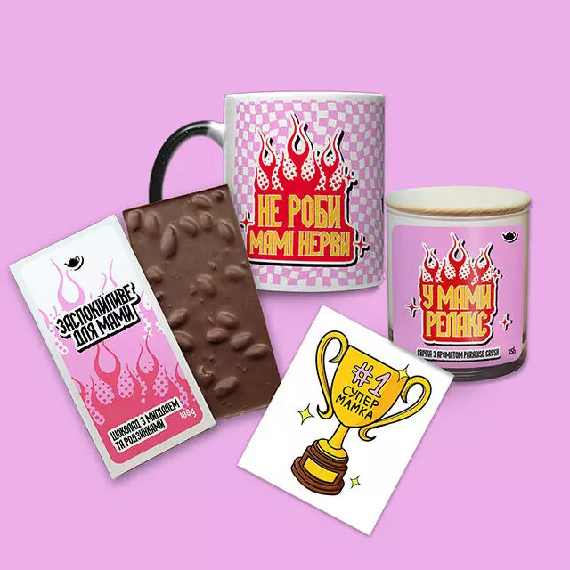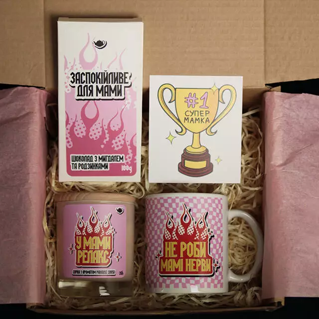 Подарунковий бокс "Прикольна мама" від Чайника Рассела до Дня матері - це чудовий спосіб віддячитися вашій мамі за все, що вона робить для вас кожен день. Склад боксу: • Чашка-хамелеон • Ароматична свічка • Молочна шоколадка з цільним мигдалем та родзинками • Подарункова листівка Бонус: Подарункове пакування у подарунок Чашка хамелеон: • Матеріал – кераміка; • Спосіб нанесення напису – сублімація; • Об’єм – 320 мл; • Призначення – для чаю, кави, води або інших напоїв; УВАГА! Ми не рекомендуємо мити кружку в посудомийній машині та нагрівати у мікрохвильовці, щоб не пошкодити принт. Свічка парфумована: Комплектація: Скло+дерев’яна кришка Колір баночки: тоноване чорне скло Колір дерев’яної кришки: темно-коричневий Склад свічки: 185 грамів воску, ароматизатор. Аромат: Paradise Crush Час горіння: 35 годин Шоколадка: Вага: 100 г Тип: Молочний шоколад Добавки: Мигдаль + родзинки Країна-виробник: Україна ???????? Термін зберігання: 390 днів Вміст какао %: 32 Умови зберігання Зберігати при температурі (18±3) °С та відносній вологості повітря не більше 75%