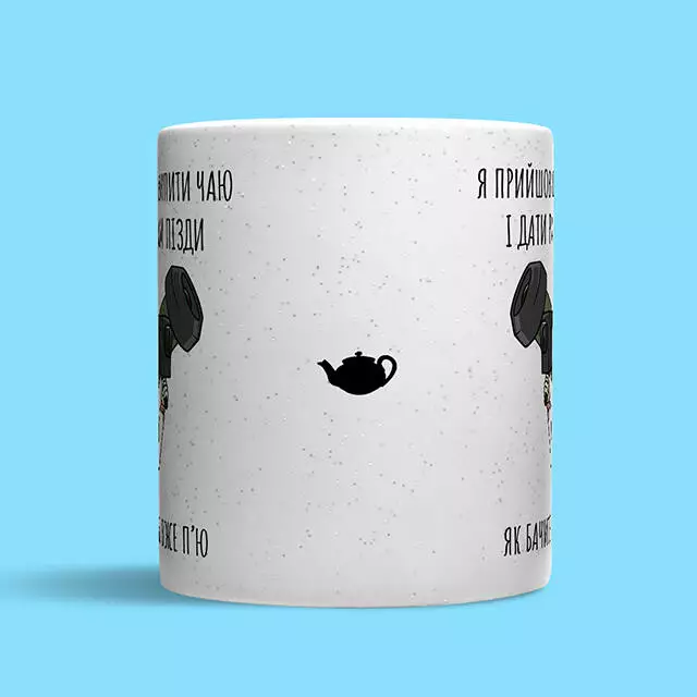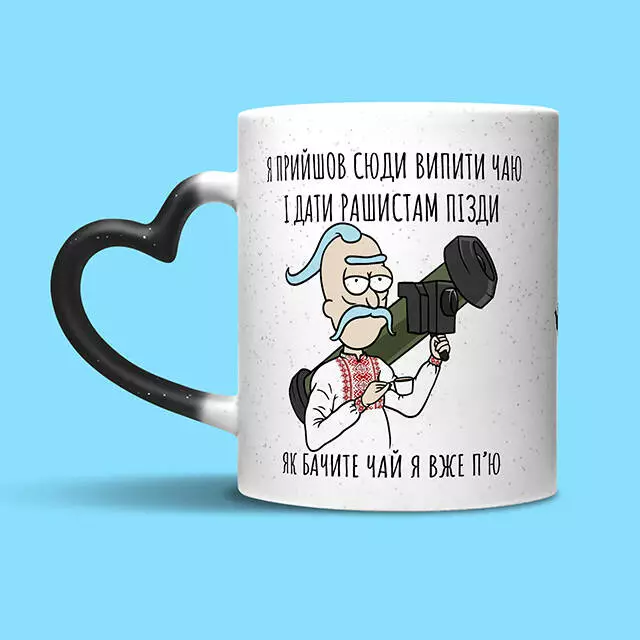 Гарячий чай та Рік з джавеліном, що може бути краще? Якщо вам потрібно щось що підійматиме настрій у будь-яку годину дня та ночі, якщо вам потрібен стимул рухатися та перемагати – ця кружка це те що потрібно! Товстелезна та міцна, як нерви Залужного, кераміка зберігатиме ваші рученятка від опіків, а принт з приємним написом підніматиме вам настрій кожного дня. Якщо ви давно шукаєте ідеальний подарунок для своєї другої половинки або просто хочете порадувати себе – завітайте до каталогу Чайник Рассела, адже нам є що вам запропонувати! Головне про кружку: • Матеріал - кераміка; • Спосіб нанесення напису - сублімація; • Об'єм - 320 мл; • Призначення - для чаю, кави, води або інших напоїв; УВАГА! Ми не рекомендуємо мити кружку в посудомийній машині та нагрівати у мікрохвильовці, щоб не пошкодити принт.