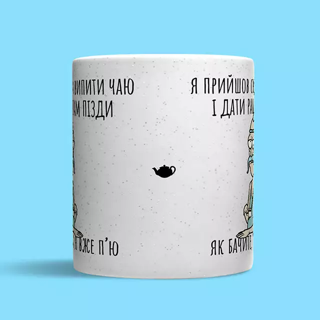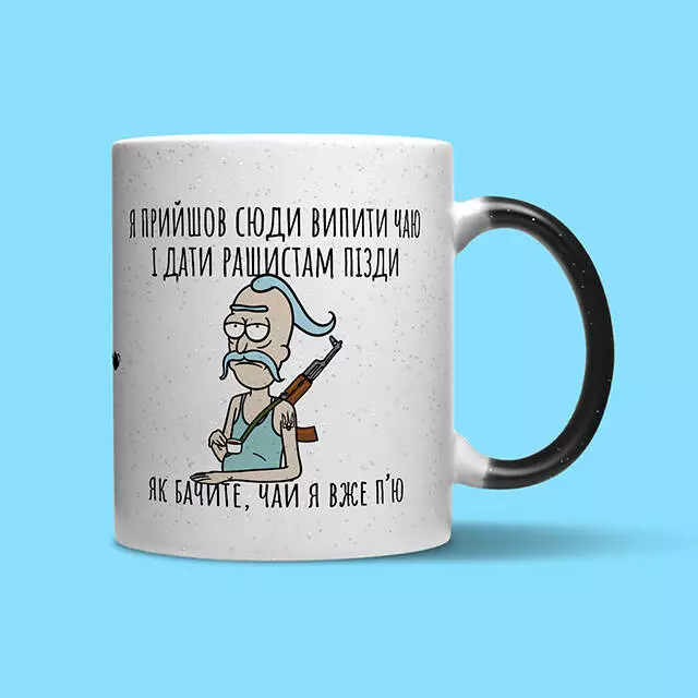 Керамічна кружка хамелеон – це те що змусить вас посміхатися вашій каві кожного ранку! Для виготовлення своїх кружок ми використовуємо справді товсту кераміку, що запобігає опікам на ваших руцях поки ви насолоджуєтеся улюбленим напоєм. Окремої уваги варті блискітки, які немов зорі на небі будуть відігравати разом з малюнком на чашці, який з’являється при нагріванні. Якщо ви шукаєте подарунок для своєї другої половинки або вам просто потрібно щось, що підніме вам настрій о п’ятій ранку під час зборів на роботу – Чайнику Рассела є що вам запропонувати! Головне про кружку: • Матеріал - кераміка; • Спосіб нанесення напису - сублімація; • Об'єм - 320 мл; • Призначення - для чаю, кави, води або інших напоїв; УВАГА! Ми не рекомендуємо мити кружку в посудомийній машині та нагрівати у мікрохвильовці, щоб не пошкодити принт.