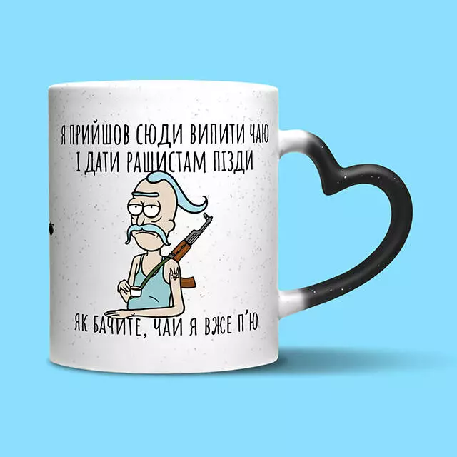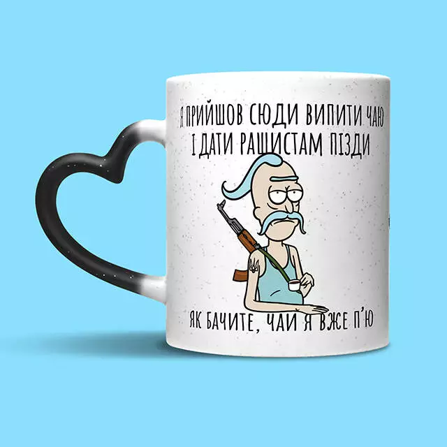 Керамічна кружка хамелеон – це те що змусить вас посміхатися вашій каві кожного ранку! Для виготовлення своїх кружок ми використовуємо справді товсту кераміку, що запобігає опікам на ваших руцях поки ви насолоджуєтеся улюбленим напоєм. Окремої уваги варті блискітки, які немов зорі на небі будуть відігравати разом з малюнком на чашці, який з’являється при нагріванні. Якщо ви шукаєте подарунок для своєї другої половинки або вам просто потрібно щось, що підніме вам настрій о п’ятій ранку під час зборів на роботу – Чайнику Рассела є що вам запропонувати! Головне про кружку: • Матеріал - кераміка; • Спосіб нанесення напису - сублімація; • Об'єм - 320 мл; • Призначення - для чаю, кави, води або інших напоїв; УВАГА! Ми не рекомендуємо мити кружку в посудомийній машині та нагрівати у мікрохвильовці, щоб не пошкодити принт.