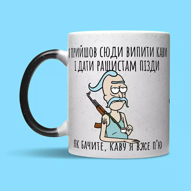 Горить, палає, Рік каву допиває! Цей дядько з джавеліном наперевіс точно не буде жартувати, доп’є каву і все.. Тож якщо ви так само як Рік хочете посміхатися допиваючи каву – ця кружка те що треба! Товстена як ракета від хаймарса кераміка збереже ваші рученята від опіків, а приємний принт з передбаченням майбутнього рашистів підніме настрій навіть у погану погоду. Також ця кружка стане чудовим подарунком вашому другу або подрузі, бо що може бути кращим за каву, Ріка та Джавелін? Головне про кружку: • Матеріал - кераміка; • Спосіб нанесення напису - сублімація; • Об'єм - 320 мл; • Призначення - для чаю, кави, води або інших напоїв; УВАГА! Ми не рекомендуємо мити кружку в посудомийній машині та нагрівати у мікрохвильовці, щоб не пошкодити принт.