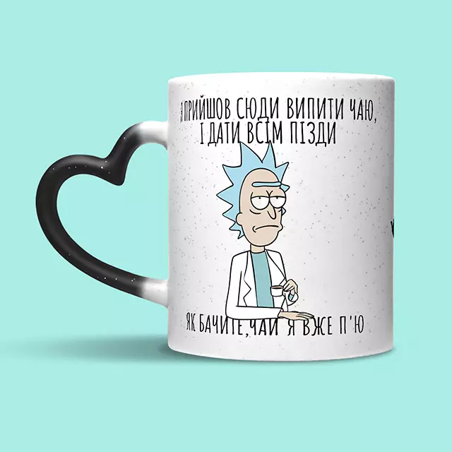 Керамічна кружка хамелеон – це те що змусить вас посміхатися вашій каві кожного ранку! Для виготовлення своїх кружок ми використовуємо справді товсту кераміку, що запобігає опікам на ваших руцях поки ви насолоджуєтеся улюбленим напоєм. Окремої уваги варті блискітки, які немов зорі на небі будуть відігравати разом з малюнком на чашці, який з’являється при нагріванні. Якщо ви шукаєте подарунок для своєї другої половинки або вам просто потрібно щось, що підніме вам настрій о п’ятій ранку під час зборів на роботу – Чайнику Рассела є що вам запропонувати! Головне про кружку: • Матеріал - кераміка; • Спосіб нанесення напису - сублімація; • Об'єм - 320 мл; • Призначення - для чаю, кави, води або інших напоїв; УВАГА! Ми не рекомендуємо мити кружку в посудомийній машині та нагрівати у мікрохвильовці, щоб не пошкодити принт.