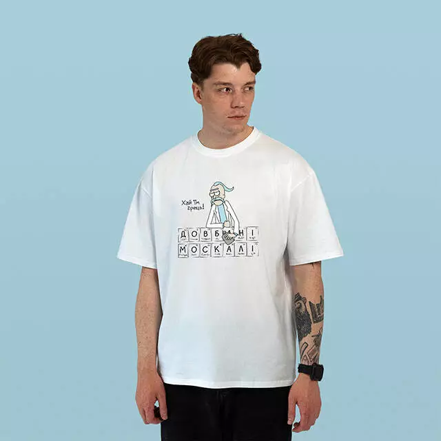 Фасон: оверсайз Тканина: стрейч кулір (Туреччина) Склад тканини: 95% бавовна 5% еластан Щільність 190 г/м2 Власне виробництво.  Вид нанесення : дтф друк Колір: білий, чорний  Виріб преміум якості має прямий крій, спущену лінію плеча та круглу горловину.  Кулір - турецкий бавовняний матеріал ,чудово зберігає форму. Стрейч - кулір має у своєму складі 95% бавовни і 5% лайкри для еластичності. Догляд за товаром: Прання при температурі не більше 40 градусів, можливо в пральній машині при мінімальних оборотах, або делікатне ручне прання. Принт прасувати тільки з вивернутої сторони без пару. Виробництво та Відправка: 1-3 днів В Комплект входить:  • Футболка Oversize  • Фірмове упакування