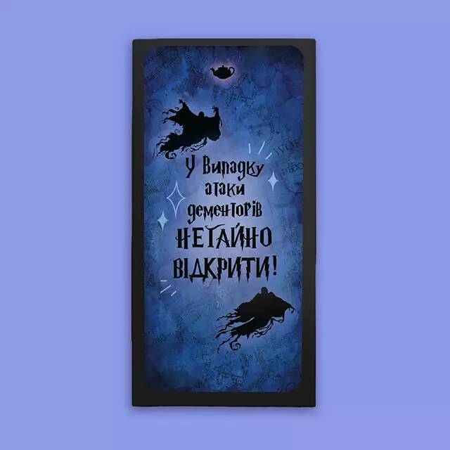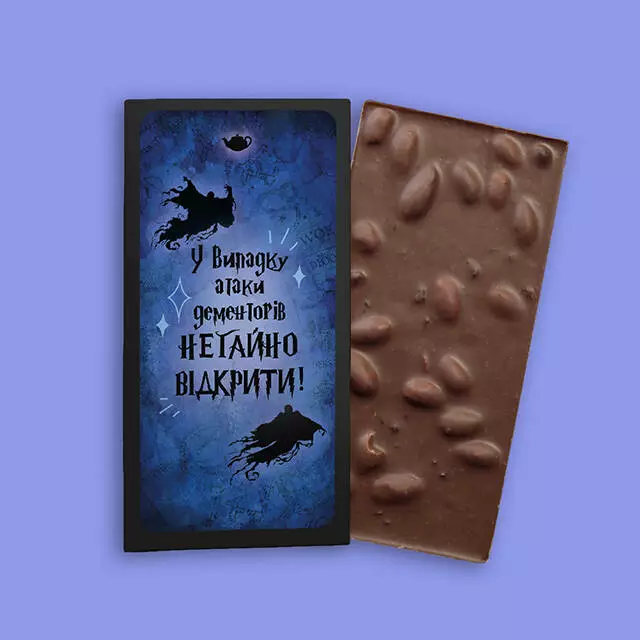 Ця шоколадка - не просто смакова насолода, вона також пропонує магію Гаррі Поттера. Вона стане відмінним подарунком для шанувальників цього захоплюючого фентезійного світу та підніме настрій всім прихильникам Гаррі Поттера. Вага: 100 г Тип: Молочний шоколад Добавки: Мигдаль + родзинки Країна-виробник: Україна ???????? Термін зберігання: 390 днів Вміст какао %: 32 Умови зберігання Зберігати при температурі (18±3) °С та відносній вологості повітря не більше 75%