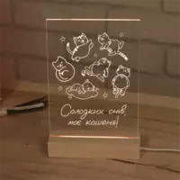 Чайник Рассела продовжує створювати неймовірні подарунки для вас! Це просто маленьке диво. Нічник, який ти не захочеш вимикати! Сучасна та об'ємна 3D-лампа стане незамінним помічником для тих, хто обожнює насолоджуватися довгими ночами та приємними вечорами. Такий подарунок принесе максимум користі та приємних вражень, а оригінальні чуттєві та затишні дизайни багато розкажуть про ваші почуття. Інформація про нічник: Матеріал: акрил (товщина - 3 мм); Тип підключення USB; Колір підсвітки - теплий білий; Тип підсвітки - Led; Матеріал корпусу - соснова деревина; Потужність: 3-3,5W