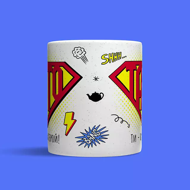 Головне про кружку: • Матеріал - кераміка; • Спосіб нанесення напису - сублімація; • Об'єм - 320 мл; • Призначення - для чаю, кави, води або інших напоїв; УВАГА! Ми не рекомендуємо мити кружку в посудомийній машині та нагрівати у мікрохвильовці, щоб не пошкодити принт.