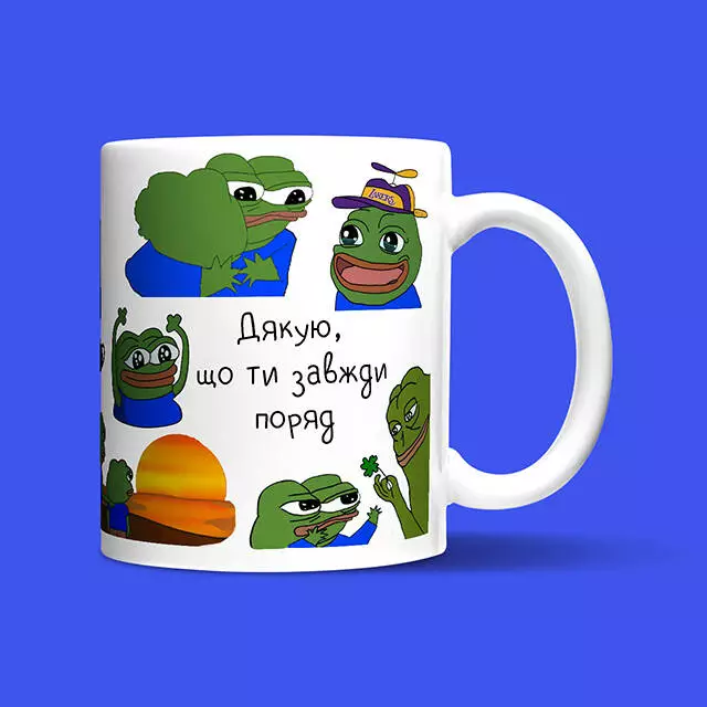 Головне про кружку: • Матеріал - кераміка; • Спосіб нанесення напису - сублімація; • Об'єм - 320 мл; • Призначення - для чаю, кави, води або інших напоїв; УВАГА! Ми не рекомендуємо мити кружку в посудомийній машині та нагрівати у мікрохвильовці, щоб не пошкодити принт.