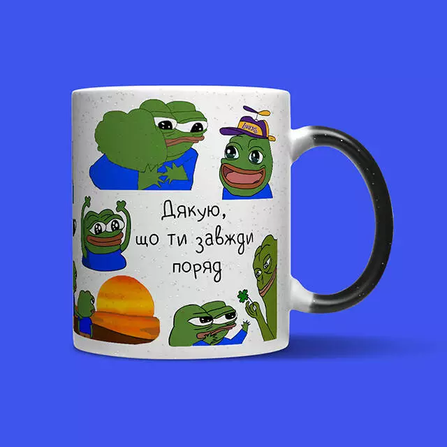 Головне про кружку: • Матеріал - кераміка; • Спосіб нанесення напису - сублімація; • Об'єм - 320 мл; • Призначення - для чаю, кави, води або інших напоїв; УВАГА! Ми не рекомендуємо мити кружку в посудомийній машині та нагрівати у мікрохвильовці, щоб не пошкодити принт.