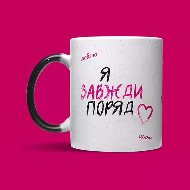 Керамічна кружка хамелеон – це те що змусить вас посміхатися вашій каві кожного ранку! Для виготовлення своїх кружок ми використовуємо справді товсту кераміку, що запобігає опікам на ваших руцях поки ви насолоджуєтеся улюбленим напоєм. Окремої уваги варті блискітки, які немов зорі на небі будуть відігравати разом з малюнком на чашці, який з’являється при нагріванні. Якщо ви шукаєте подарунок для своєї другої половинки або вам просто потрібно щось, що підніме вам настрій о п’ятій ранку під час зборів на роботу – Чайнику Рассела є що вам запропонувати! Головне про кружку: • Матеріал - кераміка; • Спосіб нанесення напису - сублімація; • Об'єм - 320 мл; • Призначення - для чаю, кави, води або інших напоїв; УВАГА! Ми не рекомендуємо мити кружку в посудомийній машині та нагрівати у мікрохвильовці, щоб не пошкодити принт.